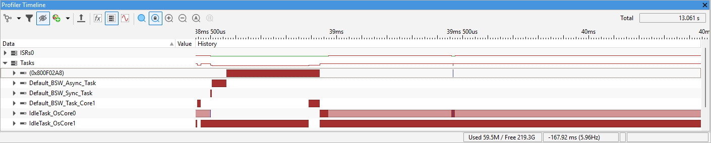 However, when utilizing OS objects, the Analyzer should display the names. If this isn’t the case, there’s likely an underlying issue. Most often, this problem arises when the symbol file (typically the ELF file), the code on the target (the program file, usually ELF or HEX) or the ORTI/Profiler.xml files are not in sync.